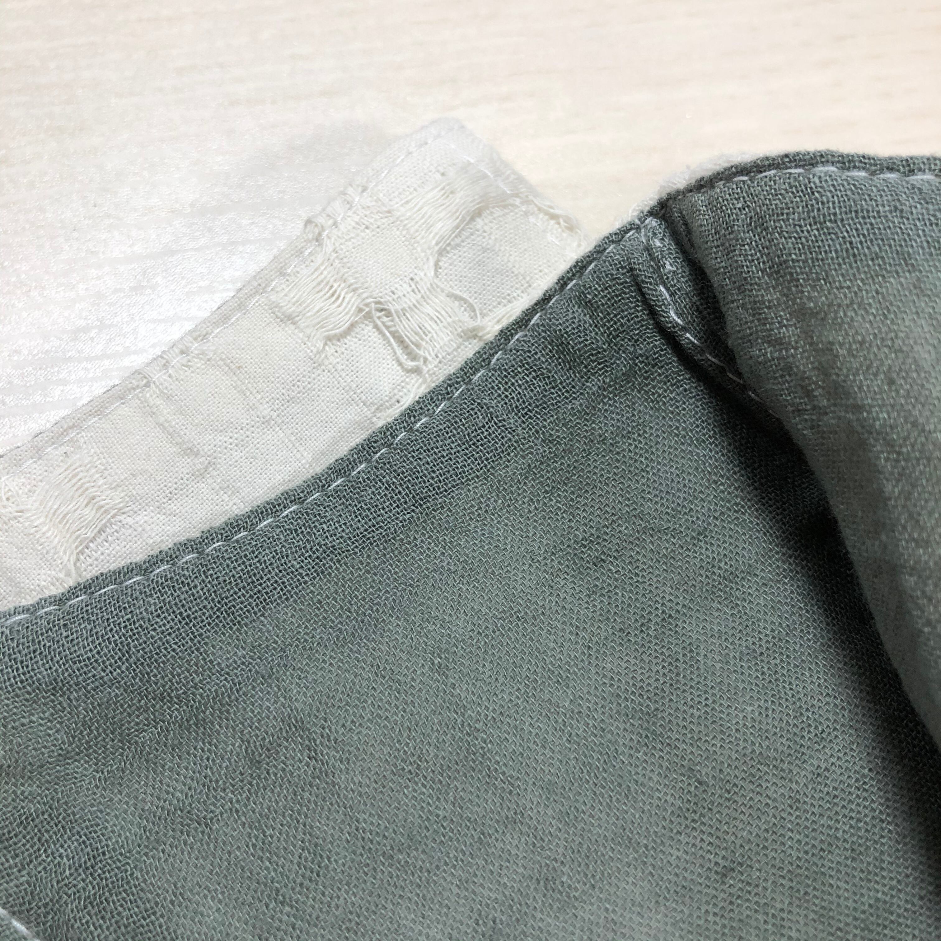表地はコットン生地を使用し、肌に触れる内側はガーゼを使用しております。コットンメイン使用で、洗濯によるマイクロプラスチックの排出を抑えられます。